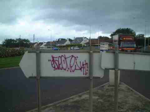 Occult writing at work.. This is the adolescent end of the occult at work, placing pentagrams into their graffiti. Serious (usually generational) occultists are not given to such blatant attempts to draw attention to themselves.